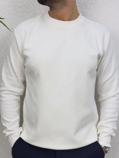 Duoble Face Kumaş Basic Sweatshirt-Beyaz